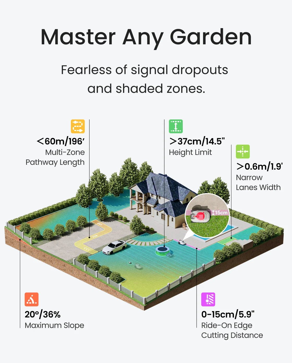 Mūsų robotas peržengia ribas, pats susikurdamas žemėlapius. Jis nuskenuoja kiekvieną augalą, kliūtį ir vingį, pateikdamas žemėlapius pikselių tikslumu. Nuo pamirštų žaislų iki paslėptų gėlynų, jis mokosi ir prisitaiko prie jūsų sodo naujų išdėstymų kiekvieną kartą pjaudamas.